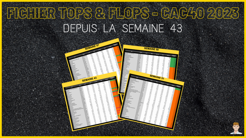 Ce fichier permet de visualiser le classement des Tops et Flops du CAC40 en 2023 Ă partir de la semaine 43 :